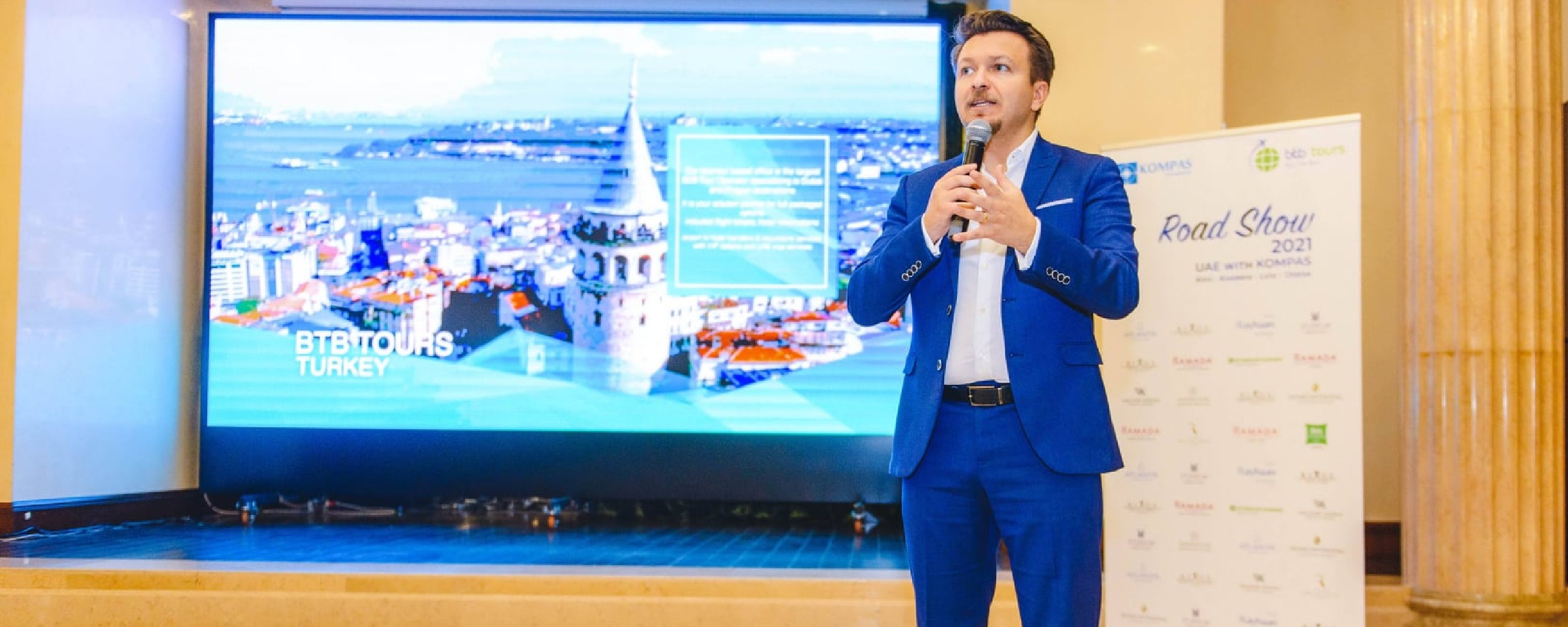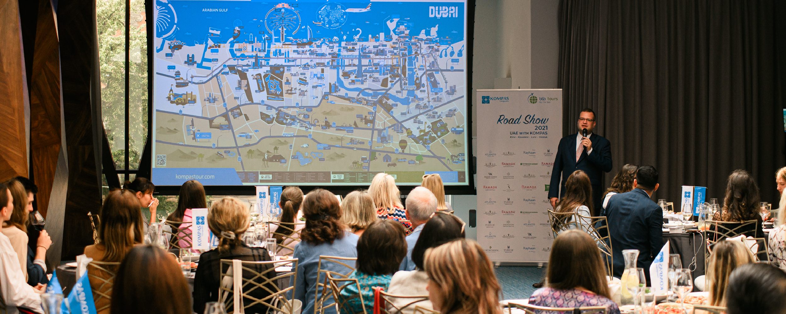 В последний месяц лета KOMPAS Touroperator совместно с партнером, принимающей компанией BTB Tours, организовал масштабное мероприятие для турагентов по направлению ОАЭ. Road Show проходило в 4 городах Украины: Киеве, Харькове, Львове и Одессе.
