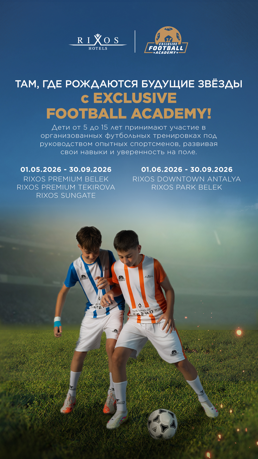 Каждое утро на рассвете силуэт Тахталы, самой великолепной вершины Таврских гор, отражается в Rixos Premium Tekirova с видом на безмятежные воды Средиземного моря. Rixos Premium Tekirova предлагает своим гостям незабываемый отдых с роскошным обслуживанием на лоне природы. Отель придерживается концепции «Счастлив ребенок – счастлива семья», поэтому в Rixos Premium Tekirova предусмотрено множество развлечений для гостей всех возрастов. Кроме того, здесь есть все необходимое для поддержания здорового образа жизни.