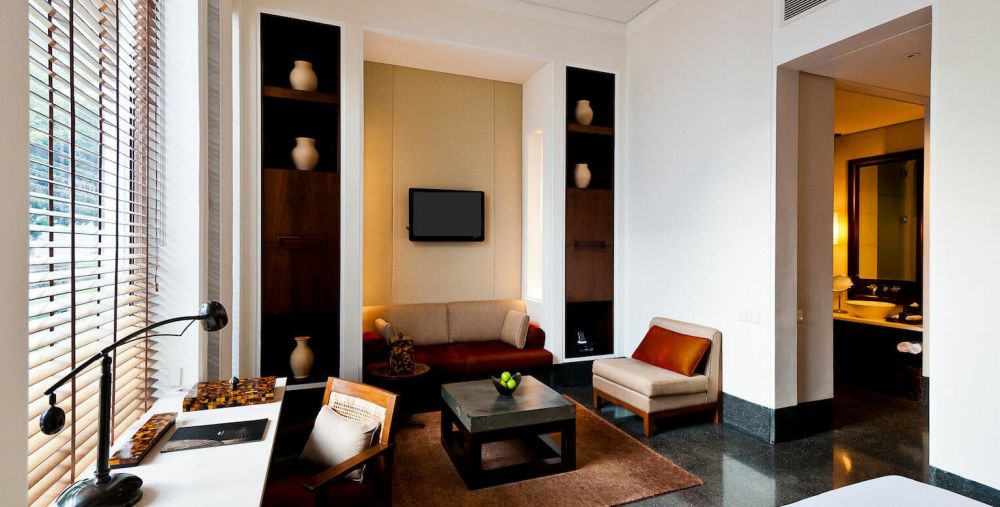 Chedi Club Suite - 77 м², макс. 2 взр. и 2 реб. до 14 лет | гостиная (диван) и спальня (двухспальная кровать), ванная комната